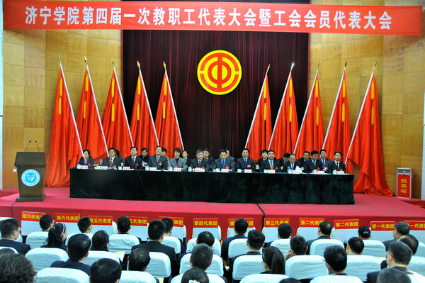 4月11日上午,我校第四届一次教职工代表大会暨工会会员代表大会在理科楼学术报告厅隆重召开。学校党委书记郁章玉,党委副书记、院长吕灵昌,党委委员、副院长刘德胜、朱松涛、张德芳,党委委员、纪委书记许记中出席会议并在主席台就坐。中国教育工会山东省委员会主席宋志明,济宁市总工会党组成员、女工委主任李惠敏到会祝贺。会议由刘德胜主持。?xml:namespace>